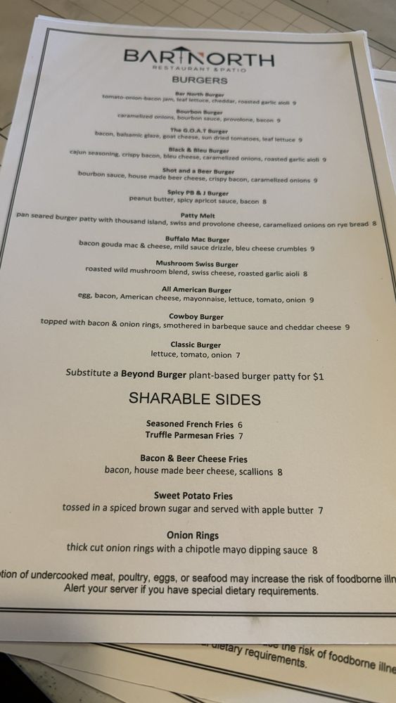 Bar North Menu
