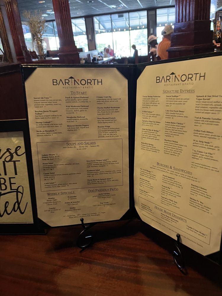 Bar North, located in Huron, Ohio, is a gem for food lovers. This New American restaurant offers a wide range of amenities such as outdoor seating, a full bar, private dining, and even drive-thru service. The menu boasts seasonal rotating items, all made from scratch. Customers rave about the seared Ahi Tuna appetizer, flavorful Flatbreads, and delectable salads. Sunday brunch features bottomless mimosas and unique dishes like the Italian Hash. The staff, described as friendly and attentive, adds to the welcoming atmosphere. Bar North is not just a place to eat, but a place to be, whether enjoying the views of Thunderbird Hills golf course in summer or the cozy ambiance in winter. Join the loyal customers in experiencing the top-quality food, extensive cocktail and wine selection, and exceptional service at Bar North.